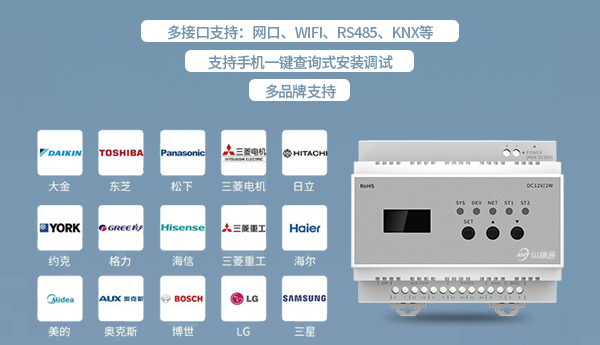 ZHT-VRFGT多聯機中央空調網關主要解決中央空調協議不開放和各個中央空調廠家協議不統一的問題,實現一個網關統一管理多個不同品牌的中央空調;設備自帶LCD液晶顯示屏,現場可直接在液晶顯示屏上查看網關信息、修改網關配置參數等功能;同時支持手機直連中央空調網關進行現場調試操作,便捷地實現對不同品牌的多聯機中央空調的遠程集中管理功能。